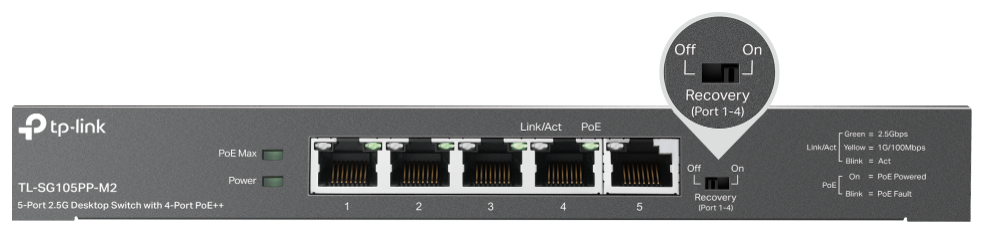 Tryb Recovery umożliwia automatyczne wykrywanie i restartowanie urządzeń PoE, takich jak kamery i punkty dostępowe, gdy przestaną działać lub odpowiadać. Zapomnij o ręcznym monitorowaniu i ponownym uruchamianiu urządzeń.