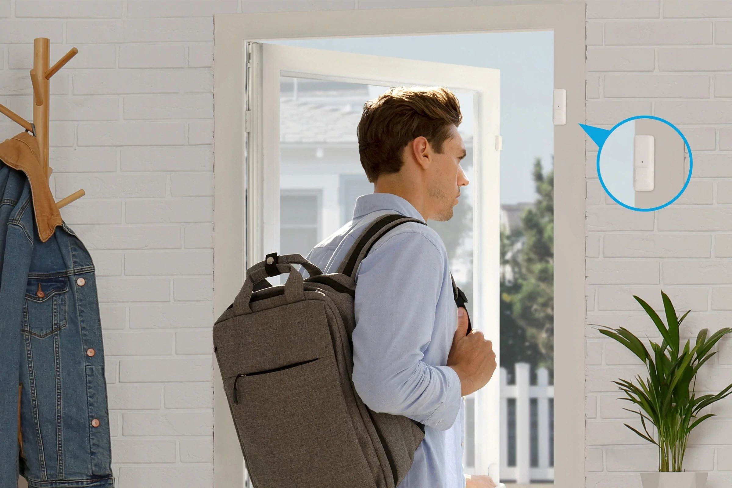 - W momencie, gdy Contact Sensor wykryje, że wychodzisz z domu (przyciśniesz guzik znajdujący się na urządzeniu), pozostałe urządzenia SwitchBot, które posiadasz automatycznie się wyłączą.