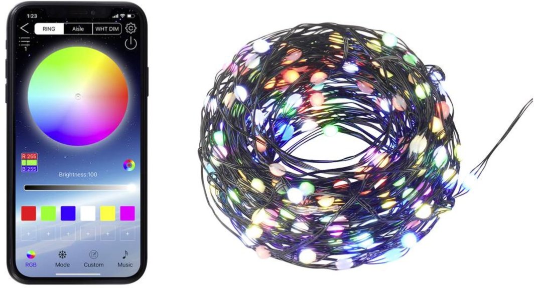 Sygonix SY-5167250 USB-lyskæde via USB Antal pærer 200 LED (RGB) RGB Oplyst Længde: 19.9 m styres via app, Timer, med farveskift