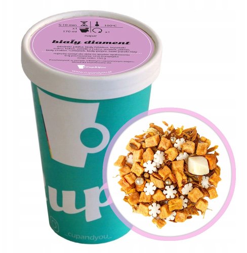 Herbata "Biały Diament" dostępna jest w przyjaznym dla środowiska EKO opakowaniu, co czyni ją doskonałym wyborem dla osób dbających o naszą planetę. Produkt pochodzi od renomowanej marki Cup&You, co gwarantuje jego wysoką jakość i oryginalność. W zestawie znajduje się również Eko Kubek, który jest bezpieczny w kontakcie z żywnością.