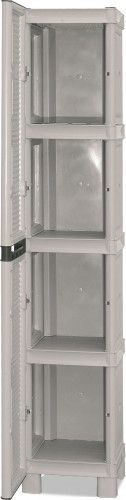 Wąska szafa ogrodowa, balkonowa, garażowa, na nóżkach firmy ArtPlast Odporna na uszkodzenia mechaniczne, odporna na UV Trwała i wytrzymała Odporna na warunki atmosferyczne (nie traci koloru, nie odkształca się) Idealna na balkon, taras, do ogrodu Wykonana z polipropylenu (PP) Wygoda porządkowania narzędzi i akcesoriów ogrodowych Kolor szafki: szary Wymiary produktu: Wysokość 172 cm Szerokość 35 cm Głębokość 39 cm Produkt do samodzielnego montażu Stalowe zawiasy 3 półki Łatwa do umycia Nie absorbuje zapachów Łatwy montaż Nóżki umożliwiające sprzątanie pod szafą Gwarancja 2 lata Bardzo praktyczna, wąska szafa o sporej wytrzymałości na uszkodzenia mechaniczne oraz odporności na działanie promieni UV - nie traci kolorów, nie odkształca się pod wpływem temperatury. Dzięki szafie utrzymasz porządek w ogrodzie na balkonie lub tarasie. Szafa idealnie nadaje się do przechowywanie zabawek, poduszek, środków czystości oraz ochrony roślin, jak również i sprzętów przydatnych w codziennym użytku. Szafa jest łatwa w utrzymaniu czystości - można ją czyścić z wykorzystaniem wody oraz typowych środków używanych np. w kuchni. Dodatkowym atutem są nóżki, dzięki którym można bez trudu sprzątnąć powierzchnie pod szafą. Uznana w Europie włoska firma ArtPlast specjalizująca się m.in. w produkcji różnego rodzaju skrzynek narzędziowych, pojemników, skrzyń i organizerów to gwarancja najwyższej jakości produktów z polipropylenu. Solidne tworzywo gwarantuje niebywałą trwałość i wytrzymałość a co za tym idzie długie i bezproblemowe użytkowanie.