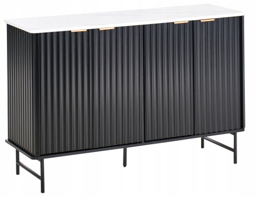 Szafka 4-drzwiowa GLASTONBURY to doskonałe połączenie nowoczesnego stylu i praktyczności, które wprowadzi odrobinę elegancji do każdego pomieszczenia. Dzięki efektownemu wykończeniu w białym marmurze na czarnym tle, ten mebel stanie się prawdziwą ozdobą Twojego salonu lub jadalni.