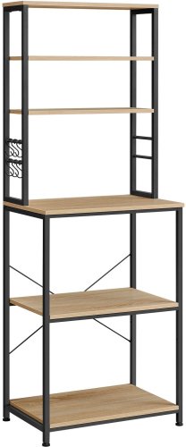 Szafka do kuchni w kolorze dąb sonoma, wyposażona w półki i haczyki w stylu loft, to doskonałe połączenie nowoczesności z funkcjonalnością. Jej elegancki design, z akcentami w czerni, sprawia, że idealnie wkomponuje się w różnorodne aranżacje wnętrz, nadając im wyjątkowego charakteru.