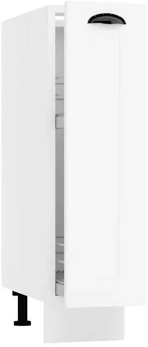 Wymiary szafki wynoszą 20 cm szerokości, 82 cm wysokości oraz 54 cm głębokości, co czyni ją idealnym rozwiązaniem do mniejszych kuchni. Korpus wykonany z płyty laminowanej o grubości 16 mm oraz fronty z matowej folii MDF o grubości 19 mm zapewniają trwałość i odporność na uszkodzenia.