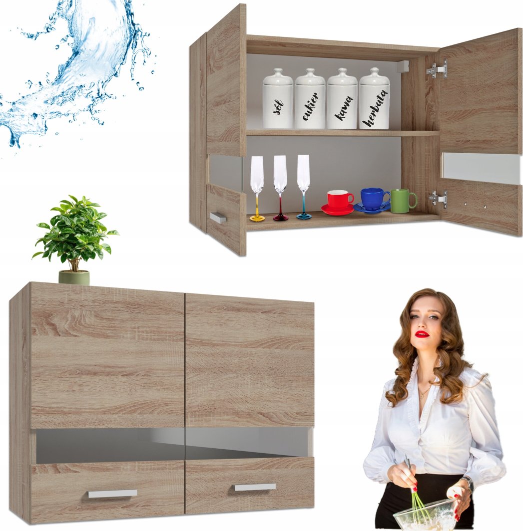 Szafka Kuchenna Wisząca Górna Dąb Truflowy Przeszklenie 80 x 31 x 58 Półka