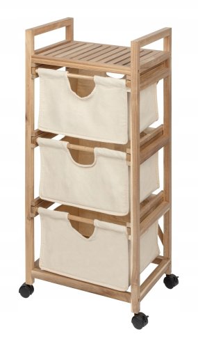 Szafka łazienkowa ACINA z trzema, materiałowymi pojemnikami, drewno akacjowe, WENKO