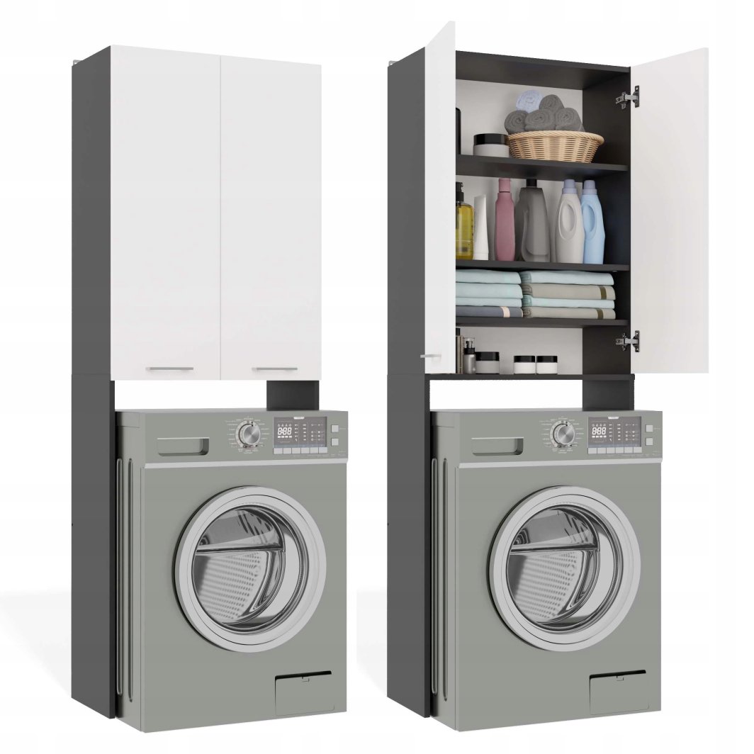 Szafka ma całkowite wymiary 180 cm wysokości, 64 cm szerokości oraz 30 cm głębokości. Wnęka szafki jest dostosowana do standardowych pralek, mając 60,8 cm szerokości i 90,5 cm wysokości, co czyni ją idealnym rozwiązaniem do każdej łazienki.