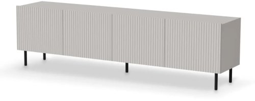 Czterodrzwiowa szafka RTV PAXOS 2 z ryflowanymi frontami Szafka RTV PAXOS 2 to esencja elegancji i funkcjonalności, zaprojektowana z myślą o nowoczesnych wnętrzach. Ten polski produkt łączy w sobie minimalistyczny design z wyrafinowanymi detalami, stając się stylowym i praktycznym centrum salonowej przestrzeni. Dzięki czterodrzwiowej konstrukcji szafka oferuje wyjątkowo pojemne wnętrze, idealne do przechowywania różnorodnych przedmiotów, dzięki czemu Twój salon będzie zawsze schludny i uporządkowany. Bezuchwytowy system otwierania zapewnia wygodne użytkowanie, a ozdobne pionowe ryflowania nadają jej unikalny charakter, subtelnie podkreślając nowoczesny styl mebla. Solidna konstrukcja wykonana jest z wysokiej jakości płyty laminowanej oraz foliowanej płyty MDF, co gwarantuje trwałość, odporność na codzienne użytkowanie oraz łatwość w pielęgnacji. Modny kaszmirowy kolor doskonale wpisuje się w aktualne trendy wnętrzarskie, nadając pomieszczeniu harmonijny i elegancki wygląd. Szafka stoi na wysokich, 15-centymetrowych nogach ze stali malowanej proszkowo na kolor czarny, co nie tylko dodaje lekkości wizualnej, ale również ułatwia sprzątanie przestrzeni pod meblem. Dodatkowa piąta noga zapewnia większą stabilność i wytrzymałość, czyniąc szafkę solidnym i niezawodnym wyborem na lata. Szafka pod telewizor PAXOS 2 to idealne rozwiązanie dla osób, które cenią sobie przestronność, funkcjonalność i nowoczesny design. Cechy produktu produkt polski, stojąca szafka RTV do salonu, szafka czterodrzwiowa, szafka o szerokości 200 cm, ozdobne pionowe ryflowania, bezuchwytowy system otwierania, korpus z płyty meblowej laminowanej, fronty z płyty MDF foliowanej, modny kaszmirowy kolor, wysokie 15 cm nogi ze stali malowanej proszkowo w kolorze czarnym, dodatkowa piąta noga dbająca o stabilność mebla, do samodzielnego montażu, w swojej ofercie posiadamy szeroki wybór mebli pozwalających na kompleksowe wyposażenie mieszkania.