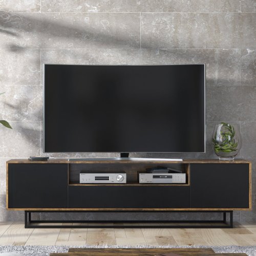 Szafka ma 200 cm szerokości, 50 cm wysokości i 35 cm głębokości — to rozmiar idealny do większych przestrzeni, w których ma pełnić nie tylko funkcję praktyczną, ale też dekoracyjną. Jeden szeroki, otwarty kompartment świetnie sprawdzi się na konsolę czy dekoder, środkowa szuflada pomoże uporządkować drobne akcesoria, a dwa boczne schowki z drzwiami na system „push to open” skrywają dodatkowe miejsce do przechowywania, bez zbędnych uchwytów, zachowując nowoczesną linię.