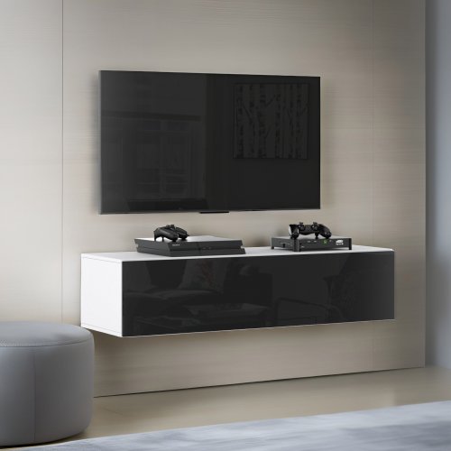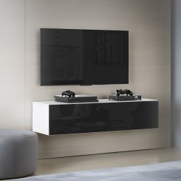Szafka Rtv Stolik Wiszący Do Sypialni Nowoczesna 140cm Biały Czarny Połysk