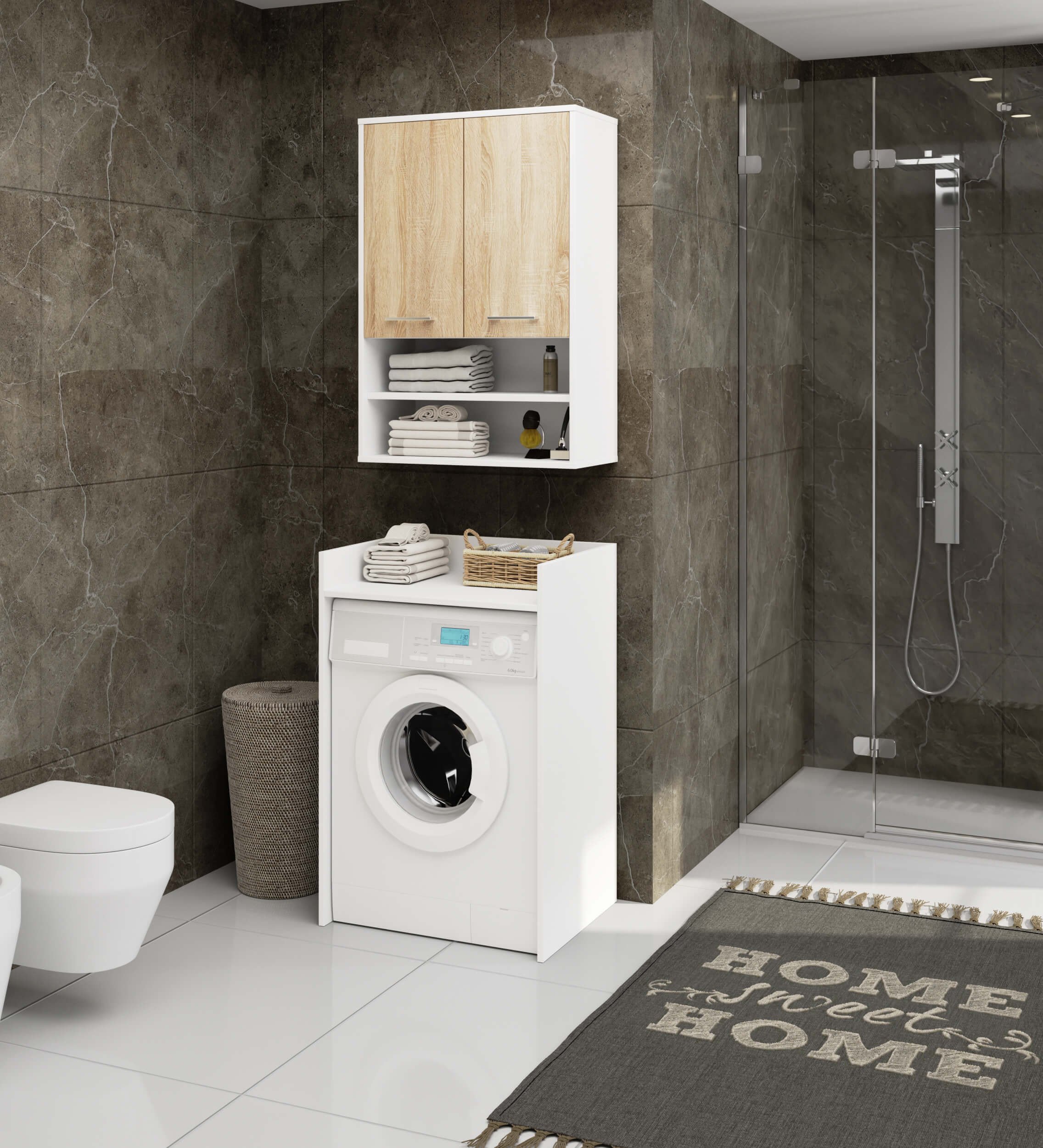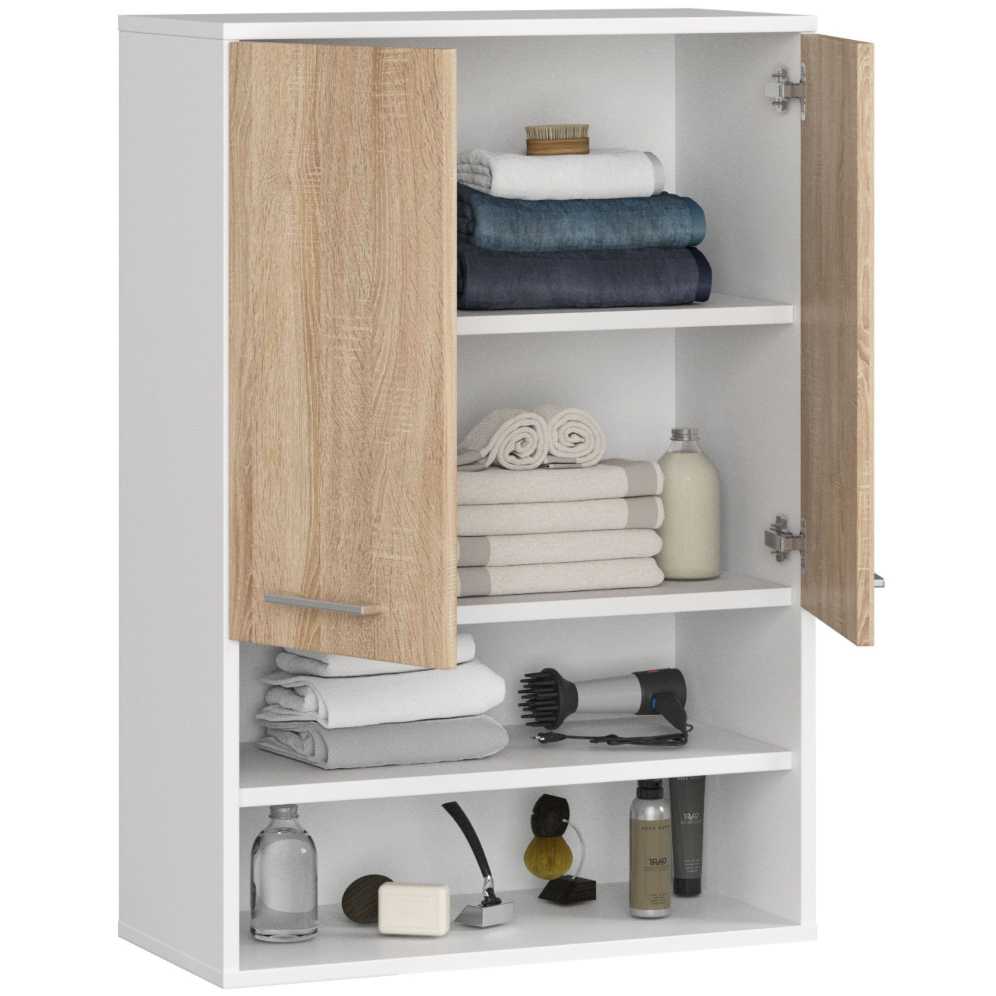 Szafka wisząca łazienkowa FIN 64 cm 2 drzwi 4 półki otwarta - biała sonoma