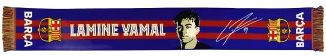 Ozdobiony motywami FC Barcelona oraz autografem Lamine Yamal, szalik doskonale oddaje ducha klubu. Jego wielobarwna kolorystyka jest idealnie dopasowana do barw klubowych, co czyni go atrakcyjnym elementem garderoby.