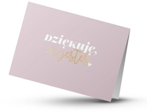 Subtelna i elegancka kartka z napisem Dziękuję, że jesteś, zaprojektowana z myślą o wyjątkowych osobach, którym chcesz wyrazić wdzięczność w piękny, osobisty sposób. Minimalistyczny projekt w odcieniu pudrowego różu dopełniają delikatne złocenia wykonane metodą hot-stampingu, które nadają kartce wyjątkowego blasku i luksusowego charakteru.