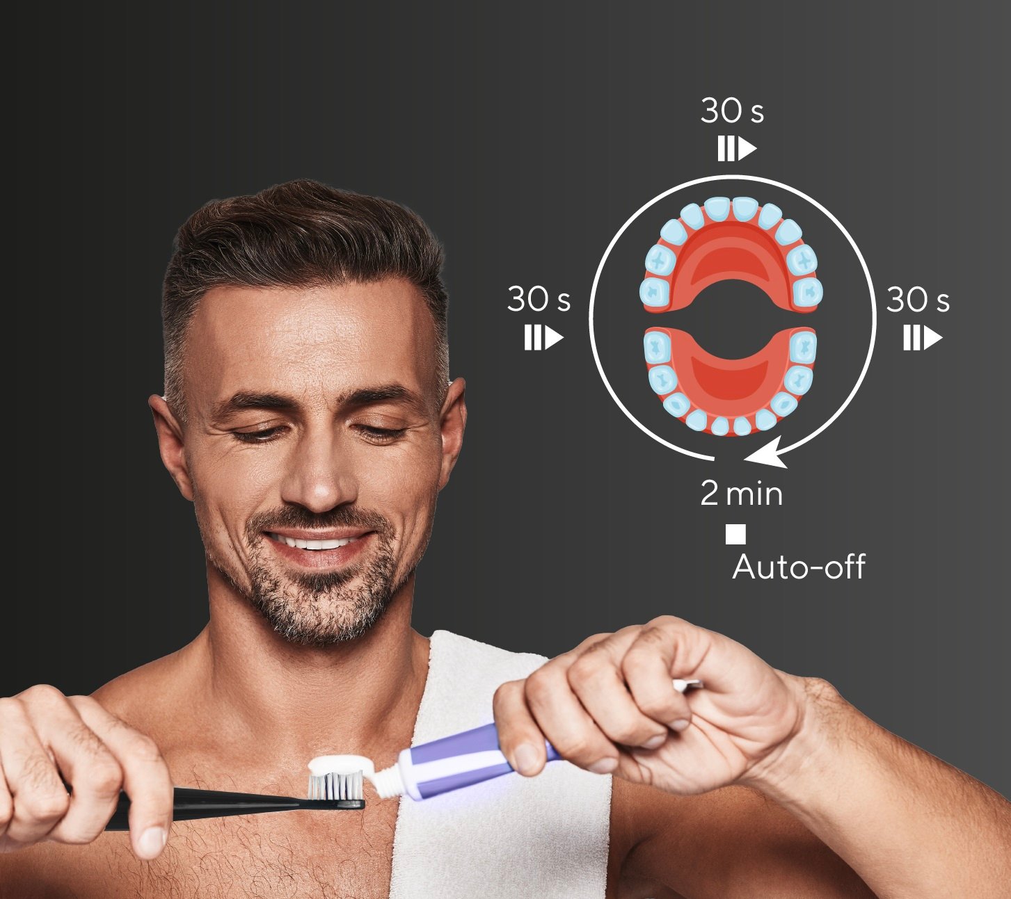 ✅Pierwszy z nich odmierza dwie minuty, po których urządzenie wyłącza się automatycznie. Dzięki temu, nie musimy już pilnować zalecanego przez dentystów czasu szczotkowania, ponieważ zatrzymanie pracy szczoteczki będzie dla nas wystarczającym tego sygnałem!