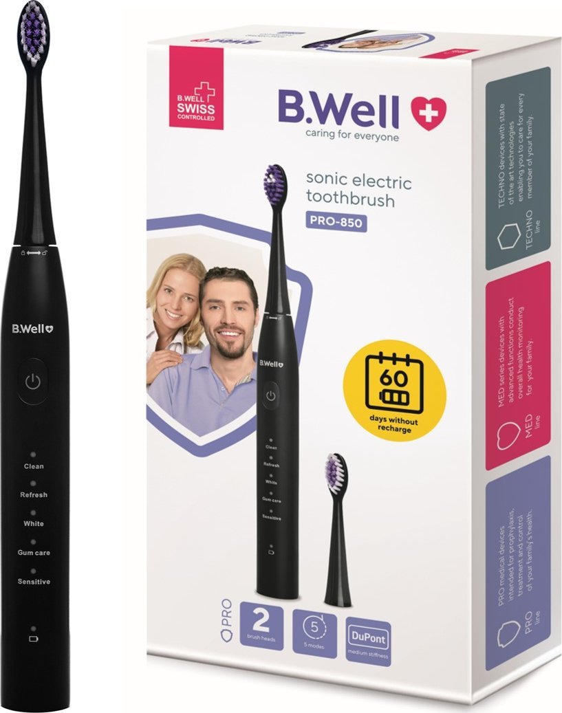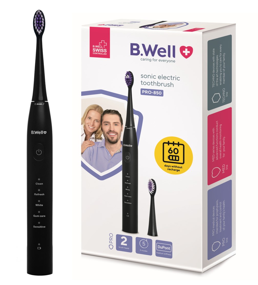 Szczoteczka B.Well Szczoteczka Soniczna Elektryczna do zębów B.WELL PRO-850 Czarna