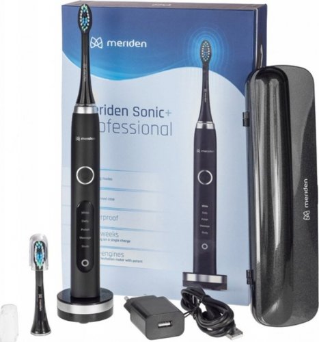 Szczoteczka Meriden Sonic+ Professional łączy w sobie najlepsze cechy technologii sonicznej jakimi są 31 tysięcy ruchów szczotkujących na minutę wykonywanych przez szczoteczkę oraz fale dźwiękowe emitowane przez włosie podczas pracy. Połączenie tych sposobów czyszczenia powoduje, że mieszanina pasty do zębów, wody oraz śliny zostaje wprawiana w ruch, a co za tym idzie usunie do 100% więcej płytki nazębnej, niż zwykła szczoteczka manualna.