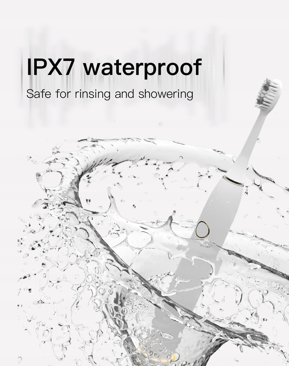 Wodoodporność elektrycznej szczoteczki sonicznej to IPX7, możesz myć zęby pod prysznicem, lekka i wygodna w przenoszeniu, bardzo odpowiednia do podróży.