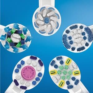 Oral-B ma w swojej ofercie wiele różnych rodzajów okrągłych główek, które otaczają każdy ząb, zapewniając zdrowsze dziąsła oraz lepsze efekty czyszczenia zębów, w porównaniu ze zwykłą szczoteczką manualną.
