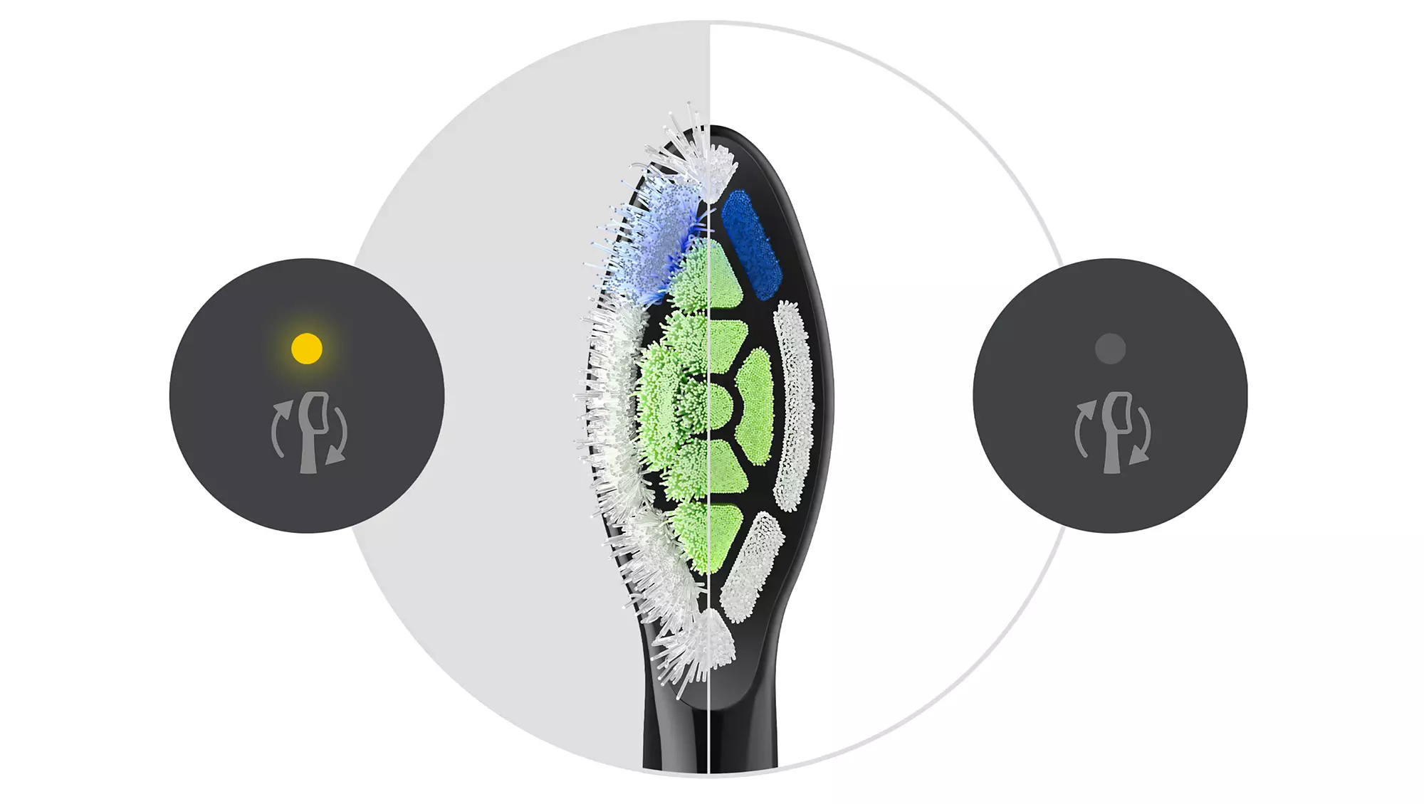 Bielsze zęby są w zasięgu ręki dzięki wybielającej podkładce do usuwania przebarwień znajdującej się w środku główki szczoteczki. Włosie w kształcie diamentu ma na celu zwiększenie kontaktu z powierzchnią i skuteczniejsze oczyszczenie przebarwień, aby zęby były nawet 2 razy bielsze w ciągu zaledwie jednego tygodnia. Wykorzystuje gęsto ułożone włosie, aby usunąć 7 razy więcej płytki nazębnej niż zwykła manualna szczoteczka, a jednocześnie oczyszcza całe usta.