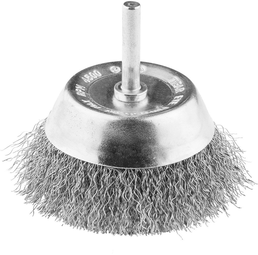 Szczotka druciana doczołowa 70 mm, drut karbowany, INOX, z trzpieniem 6 mm