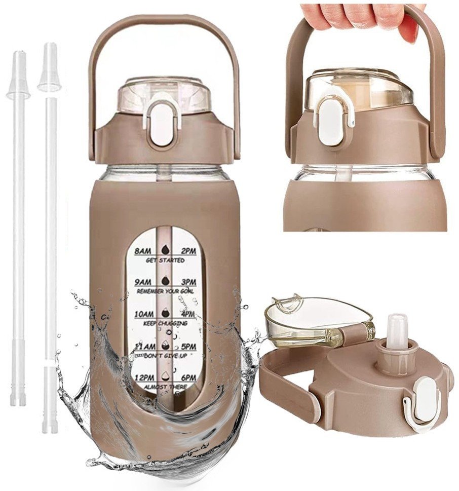 Szklana butelka na wodę 950 ml ze słomką Supero, jasnobrązowa