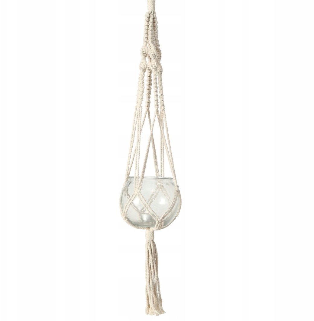 Szklana doniczka na kwiaty, dekoracja z makramy MAKRAMEE, 83 cm