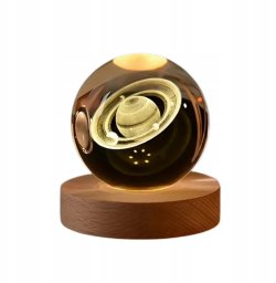 SZKLANA KULA Lampka 3D NOCNA 6cm Zasilana USB dla DZIECI SYPIALNIA Planeta