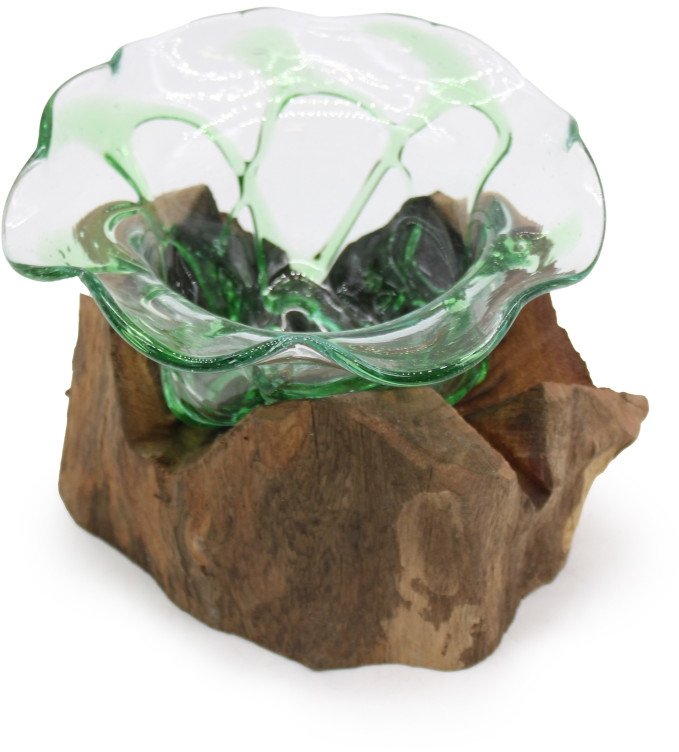 Proces tworzenia szkła z recyklingu wtopionego w drewno wymaga wielu umiejętności i kunsztu. Każdy egzemplarz wykonano ręcznie i z tego powodu jest niepowtarzalny, co oznacza, że nie ma dwóch takich samych. Każde naczynie jest jedynym w swoim rodzaju dziełem sztuki, które z pewnością doda przestrzeni elegancji i indywidualności. Szkło wtopione w drewno wykonane zostało tak, by wywołać najprawdziwszy efekt wow! Prawdopodobnie najlepszy produkt pochodzący z Bali na przestrzeni ostatnich lat.