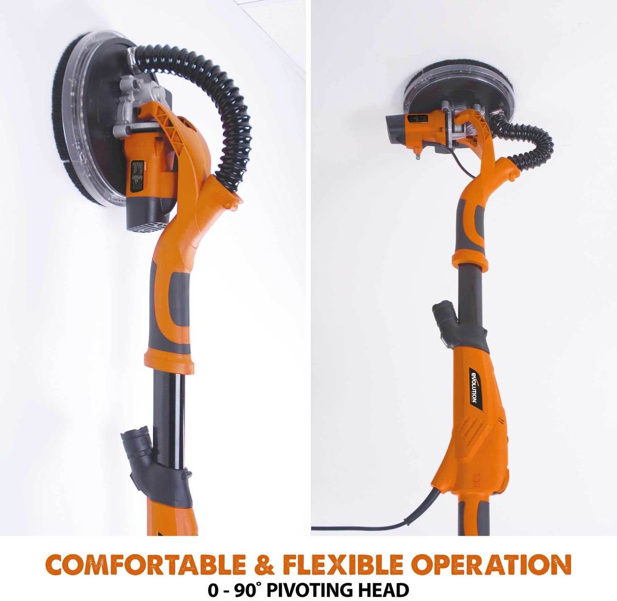 Doszlifuj co tylko chcesz dzięki teleskopowej szlifierce do ścian gipsowych Evolution R225DWS. Dzięki lekkiemu silnikowi o zmiennej prędkości, łatwo sterowalnej głowicy szlifierskiej i połączeniu z odsysaniem pyłu jest to idealne narzędzie do wygładzania wszystkich połączeń taśm i perfekcyjnego polerowania tynku.