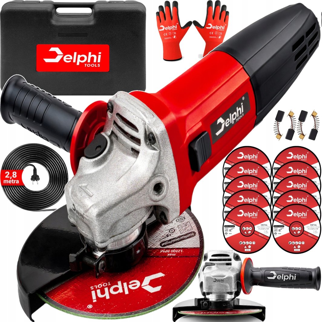 Szlifierka kątowa Delphi Tools sprawdzi się w wielu zadaniach, takich jak cięcie płyt, prętów, blach i rur, szlifowanie drewna, metalu i kamienia, a także usuwanie rdzy i wygładzanie spawów. To narzędzie, które z pewnością sprosta Twoim oczekiwaniom.