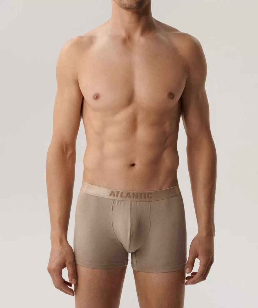 Szorty o sportowy krój odznaczają się niską talią, wykończoną przyjemną w dotyku i nieuciskającą ciała gumą z logo Atlantic oraz standardowej długości bokami. Idealne dopasowanie do ciała. Skład: 47% modal, 46% bawełna pima, 7% elastan.