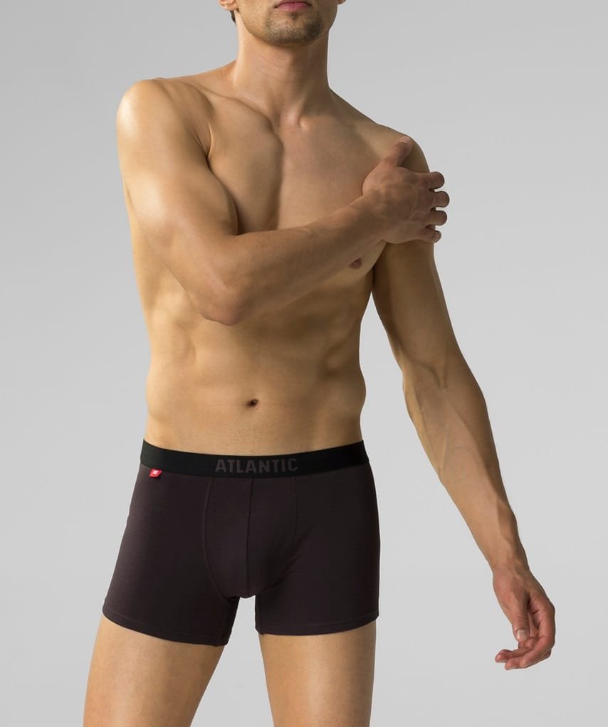 Sportowe szorty idealnie przylegają do ciała, mają standardowej długości nogawki i niską talię wykończoną miękką i nieuciskającą ciała gumą zewnętrzną z napisem Atlantic. Pakowane po 5 sztuk. Skład: 95% bawełna, 5% elastan.