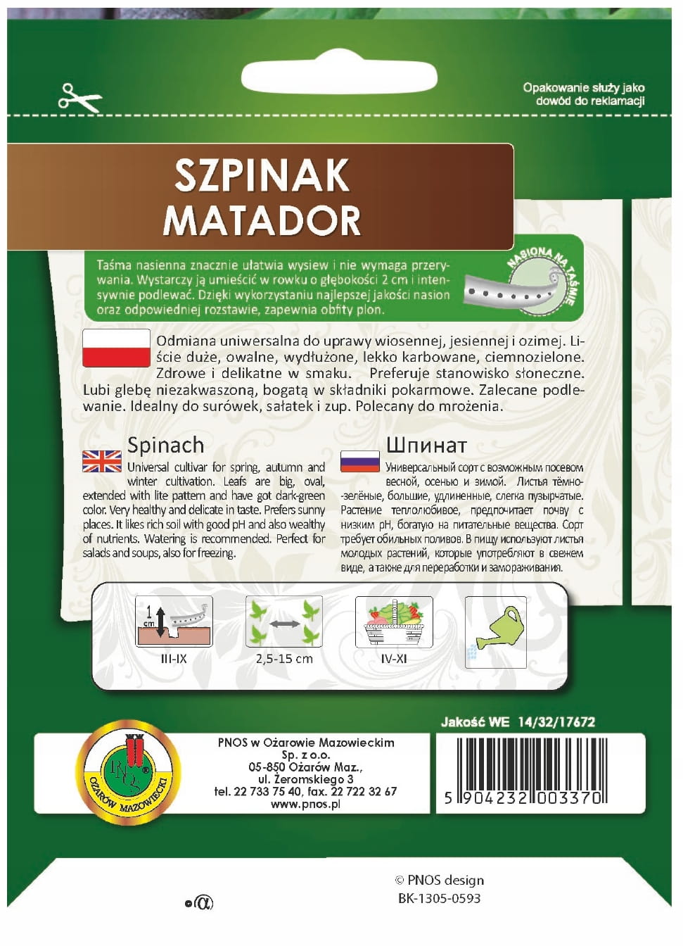 Szpinak Matador to wyjątkowa odmiana, idealna do uprawy wiosennej, jesiennej i ozimej.