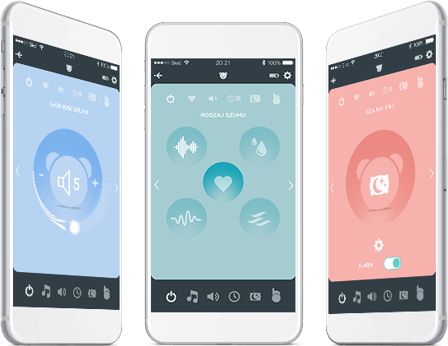 Aplikacja Mobilna - Dzięki aplikacji możesz sterować Szumisiem z sąsiedniego pokoju, dzięki czemu nie zbudzisz Maluszka wchodząc do pokoju lub wyjmując go z łóżeczka, aby zmienić funkcje; aplikacja steruje wszystkimi funkcjami Misia; dodatkowo przygotowaliśmy specjalny edytor zdjęć, dzięki któremu nie zapomnisz najważniejszych chwil swojego Maleństwa; aplikacja łączy się z Misiem przy pomocy bluetooth
