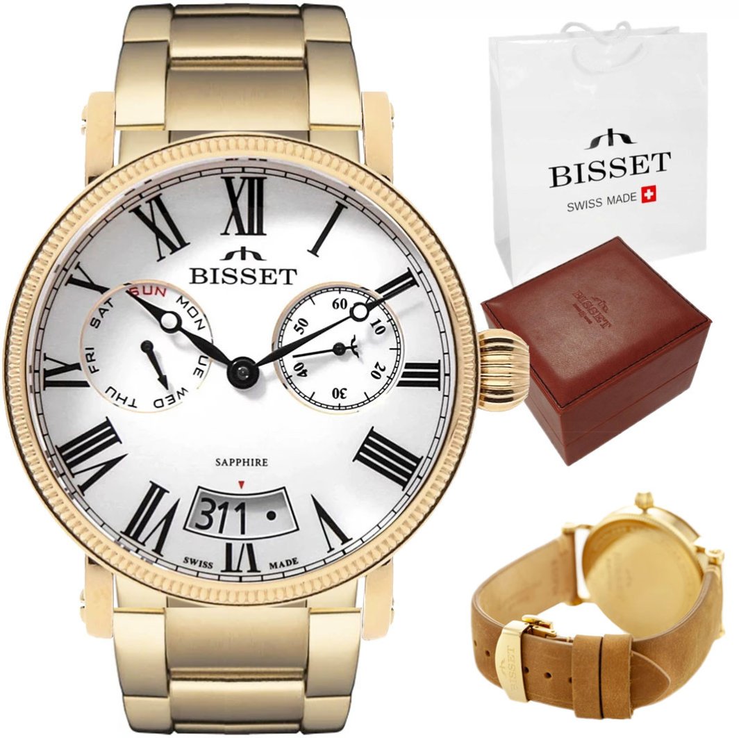 Szwajcarski zegarek męski Bisset szafirowe szkło ZESTAW