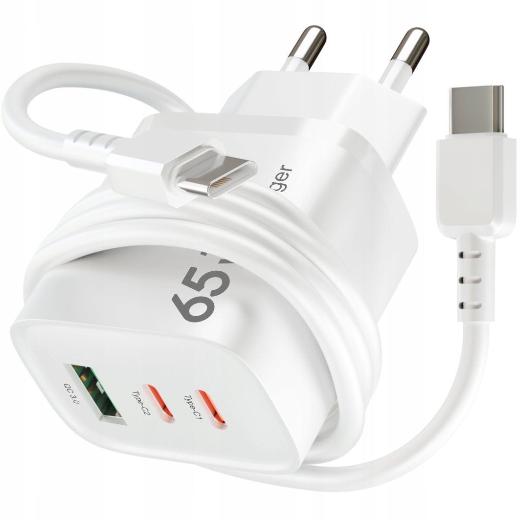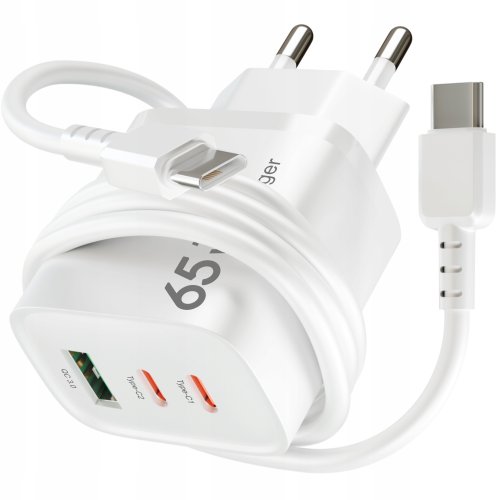 SZYBKA MOCNA Ładowarka sieciowa USB 2xUSB-C PD 65W GaN KOSTKA +Kabel TYP-C