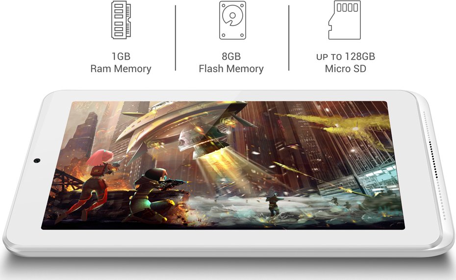 Pamięć podręczna o pojemności 1 GB zapewni optymalną płynność działania urządzenia podczas pracy, przeglądania stron internetowych i korzystania z wielu aplikacji. Tablet z 1 GB pamięci RAM to dobry kompromis pomiędzy wysoką wydajnością i atrakcyjną ceną urządzenia.
