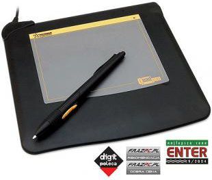 Obszar roboczy 127x95,25mm Wymiary (wysxszexdł) 200x195x6mm Rozdzielczość 2540 lpi Ilość poziomów nacis 1024 Dokładność 0,254mm Max.wysokość odczytu 6mm Zasilanie USB Podłączenie USB Wymagania Pentium 100 +;Win 95/98/NT 4.0 ; CD-ROM ;USB Opis zawartosc pudelka: zapasowe koncowki, podstawka pod piorko, CD sterowniki i program sterujacy, CorelArtDabbler, bateria AAAA, instrukcja obslugi, piorko i tablet