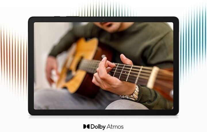Zanurz się w głęboki dźwięk z głośnikami, które zapewniają otaczające Cię doświadczenia audio. Ciesz się filmami i muzyką na nowym poziomie. Tablet Samsung Galaxy Tab A9+ pozwala Ci całkowicie zanurzyć się w niezwykle czystym i głębokim dźwięku.