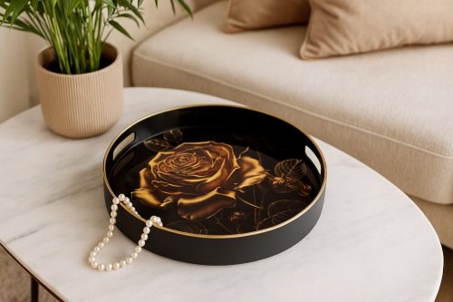 Nowoczesna taca okrągła z motywem róży – styl, który zachwyca!