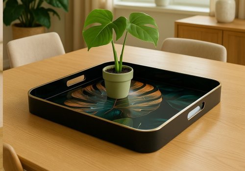 Nowoczesna taca kwadratowa z motywem egzotycznych liści – styl, który zachwyca!
