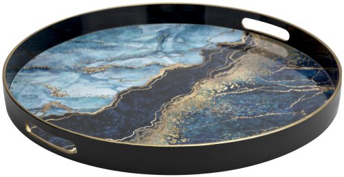 Posiada płytę, którą dekorują różne złote wzory na tle czerni. Jej podwyższone obrzeża z tworzywa sztucznego zapobiegają zsunięciu się zawartości tacy.