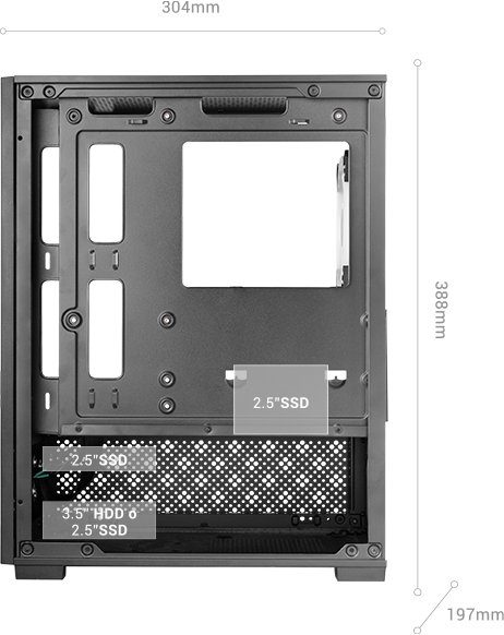 • Kompatybilne urządzenia: MicroATX / Mini-ITX, ATX, USB3.0 x1 / USB2.0 x2 / HD Audio + Mic, 1x 3,5" HDD + 1x 3,5” SSD lub 2x 3,5" SSD