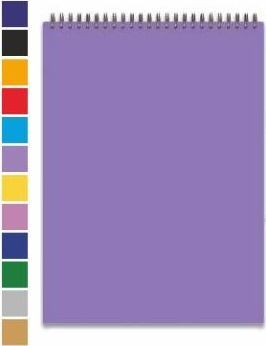 Kołozeszyt w twardej oprawie w spirali 80 kartek, gramatura papieru w kratkę - 65 g, pastelowy. Wykonany z tektury 1,5 mm. Okleina uszlachetniona folią polipropylenową. Spirala zamocowana na krótszym boku, kartki z perforacją i otworami do segregatora. Dostępny w 12 kolorach.