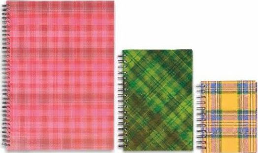 Wykonany z tektury 1,5 mm. Okleina uszlachetniona folią polipropylenową, różne wzory okleiny w zależności od zastosowanego papieru. Spirala zamontowana na dłuższym boku, kartki z perforacją i otworami do segregatora.