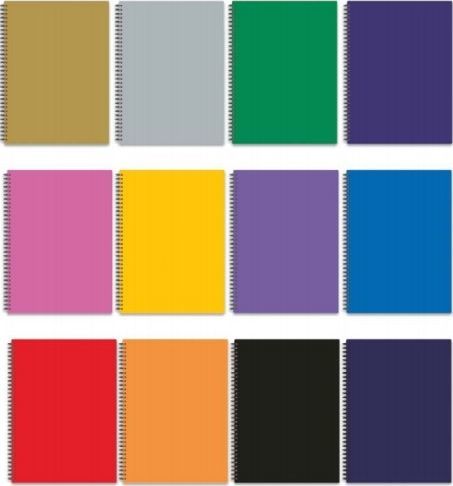 Brulion w twardej oprawie w spirali 80 kartek, gramatura papieru w kratkę - 65 g, pastelowy. Wykonany z tektury 1,5 mm. Okleina uszlachetniona folią polipropylenową. Spirala zamocowana na dłuższym boku, kartki z perforacją i otworami do segregatora. Dostępny w 12 kolorach.