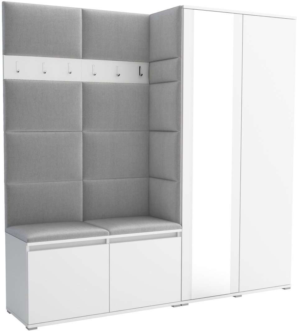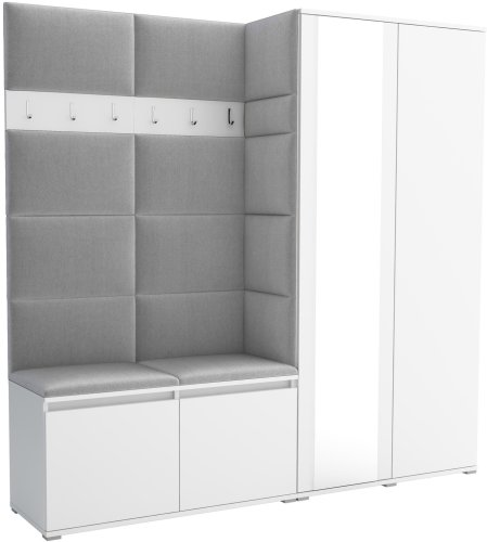 Tapicerowana garderoba Noris IV z lustrem - kolor biały + tkanina Trinity 32
