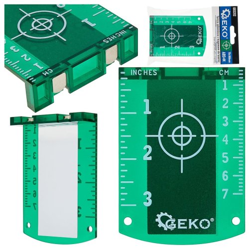 Zielona tarcza celownicza z magnesem do lasera (10/500) to nowoczesne narzędzie od marki Geko, które umożliwia dokładne celowanie w różnych warunkach. Dzięki zastosowaniu magnesu, montaż oraz stabilizacja tarczy są niezwykle łatwe, co czyni ją idealnym wyborem zarówno dla amatorów, jak i profesjonalistów.