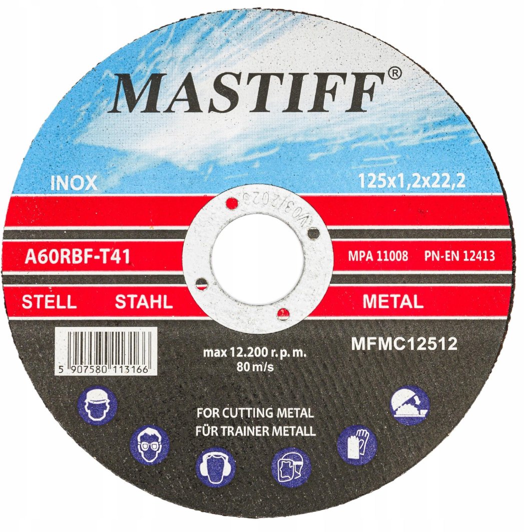 Tarcza cięcia metalu Mastiff MFMC12512 o średnicy 125 mm i grubości 1,2 mm to znakomite narzędzie zarówno dla profesjonalistów, jak i hobbystów, którzy poszukują wysokiej jakości oraz precyzyjnego cięcia. Dzięki swojej konstrukcji, ta tarcza umożliwia efektywne cięcie różnorodnych materiałów, w tym stali, stali nierdzewnej (INOX) oraz żeliwa. Jej wyjątkowe właściwości sprawiają, że jest doskonałym wyborem do wielu zastosowań w warsztatach i na placach budowy.