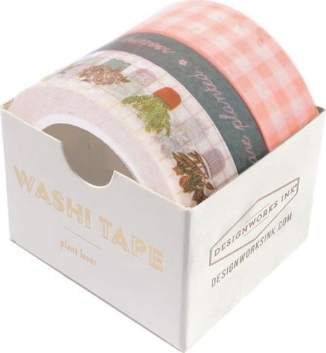 Ten zestaw 3 taśm zawiera rolkę o wzorze różowej kratki, zabawne skrypty i wzór roślin doniczkowych.